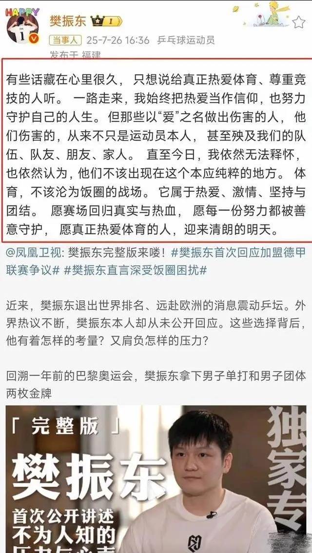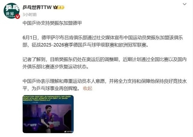 面临质疑,樊振东恢复:
