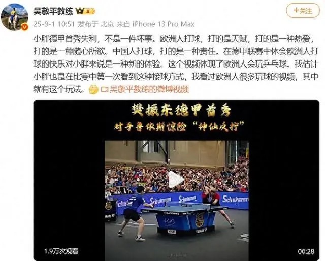 28岁的樊振东,果决是乒乓球界当之无愧的“超等全满贯”得主。巴黎奥运夺冠之后,他本可在国内赛场尽享无上荣光,但是在2025年8月,他却松弛已然地远赴德国。初登德甲赛场,便遭受两连败,以致还遭受了“反水国度”的骂名,如斯聘用,实在让大宗东说念主感到微辞。